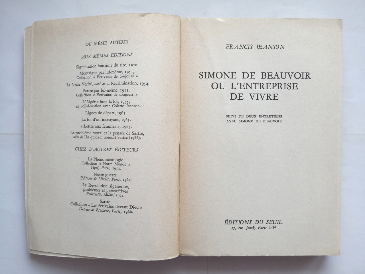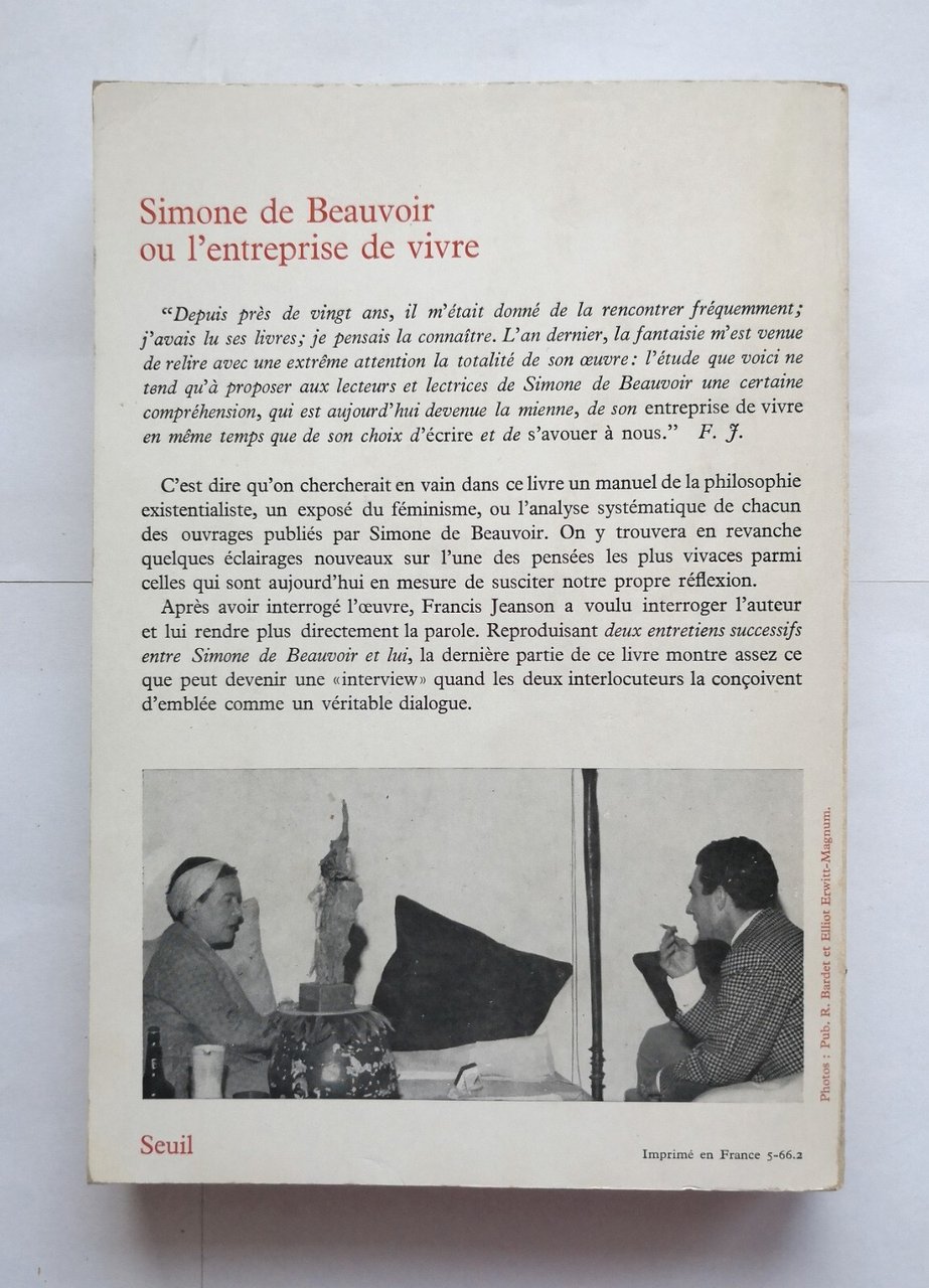 SIMONE DE BEAUVOIR OU L'ENTREPRISE DE VIVRE di Francis Jeanson 1966 Libro Seuil