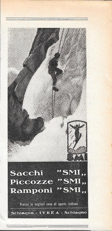 SMI. Sacchi, picozze, ramponi. Advertising 1935