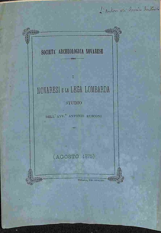 Societa' archeologica novarese. I Novaresi e la Lega lombarda. Studio