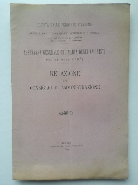 Societa' delle Ferriere italiane. Assemblea generale ordinaria degli azionisti del 24 aprile 1883. Relazione del Consiglio di Amministrazione
