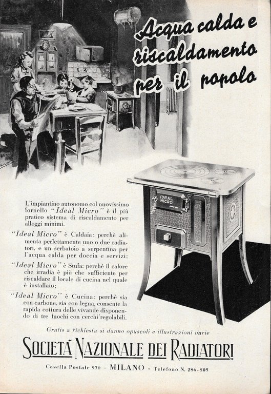Società Nazionale dei Radiatori. Acqua calda e riscaldamento per il popolo - Advertising 1939