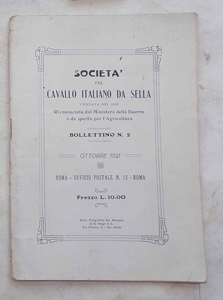 Società pel Cavallo Italiano da Sella. Bollettino n. 2. Ottobre 1921.