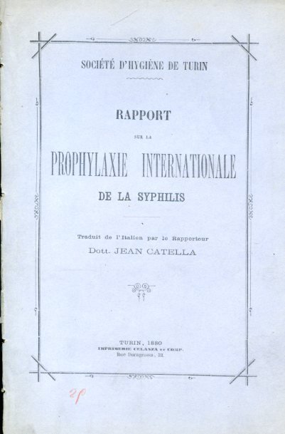 Société d'Hygiène de Turin. Rapport sur la prophylaxie internationale de la syphilis. Traduit de l'Italien par le Rapporteur