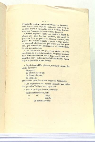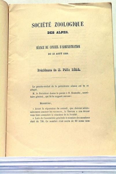 SOCIETE Zoologique des Alpes. Séance du Conseil d'Administration du 23 Août 1856. Présidence de M. Félix Réal.