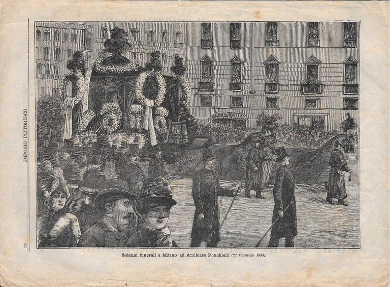 Solenni funerali a Milano ad Amilcare Ponchielli. 21 Gennaio 1886. Stampa 1886