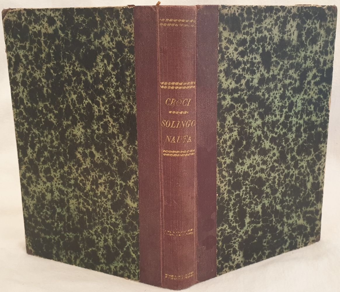 Edizione del 1902 di questa opera in versi di Luciano Croci "Solingo nauta". Molte poesie dedicate a Roma. In buone condizioni. Copertina in mezza tela con titolo e decorazioni in oro al dorso in buone condizioni generali con lievi usure ai margini e dorso. Legatura in discrete condizioni con lievi rotture. Pagine in buone condizioni con fioriture. In 8. Dim. 19x13 cm. Pp. 209+(5). Edition of 1902 of this work in verses by Luciano Croci "Solingo nauta". Different poems dedicated to Rome. In good conditions. Half cloth cover with golden title and decorations in the spine in good conditions lightly worn in the edgeds and spine. Binding in fair conditions with slight cracks. Pages in good conditions with foxings. <BR>In 8. Dim. 19x13 cm. Pp. 209+(5).