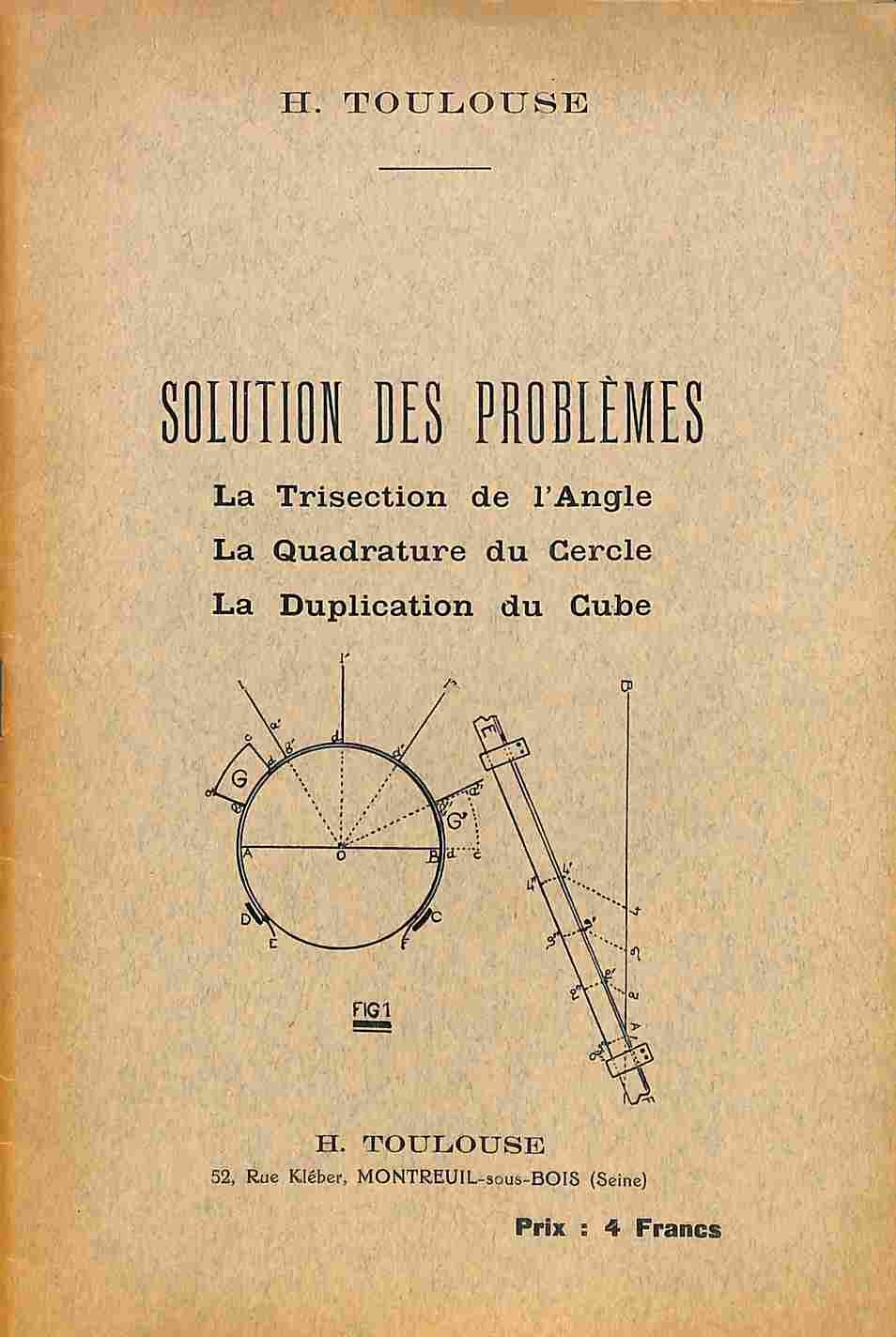 Solution des problemes. La trisection de l'Angle, la quadrature du cercle, la duplication du cube
