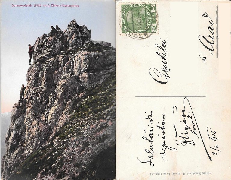 Sonnwendstein, Zinken-Kletterpartie . Viaggiata 1915