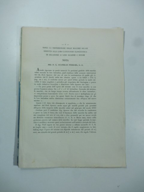 Sopra la distribuzione delle macchie solari rispetto alla loro latitudine eliocentrica in relazione ai loro massimi e minimi