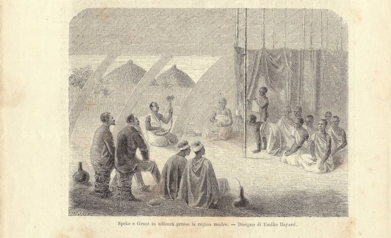 Speke e Grant in udienza presso la regina madre. Illustrazione 1864