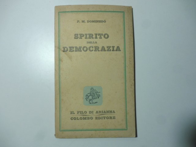 In 8 (cm 12 x 20,5), pp. 80. Fioriture sparse alle pagine. Brossura editoriale. Argomenti: Momento economico. Liberta' e pianificazione; Dal capitalismo alla cooperazione; Verso la democrazia economica; Il momento giuridico. La crisi della legalita'; Democrazia e Costituente; La guerra e la pace; Il momento politico. Democrazia di valori; Esigenza della sintesi; Spirito della democrazia.