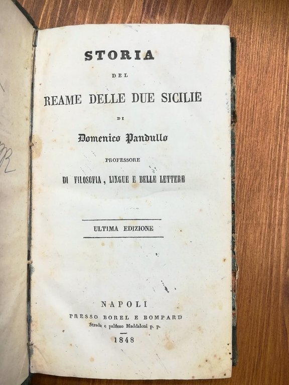 RARO. "Ultima edizione" - Volume cartonato, legatura coeva in mezza pelle verde, piatti marmorizzati, 250 pagine. Scritte alla guardia anteriore, peraltro esemplare in buono stato.