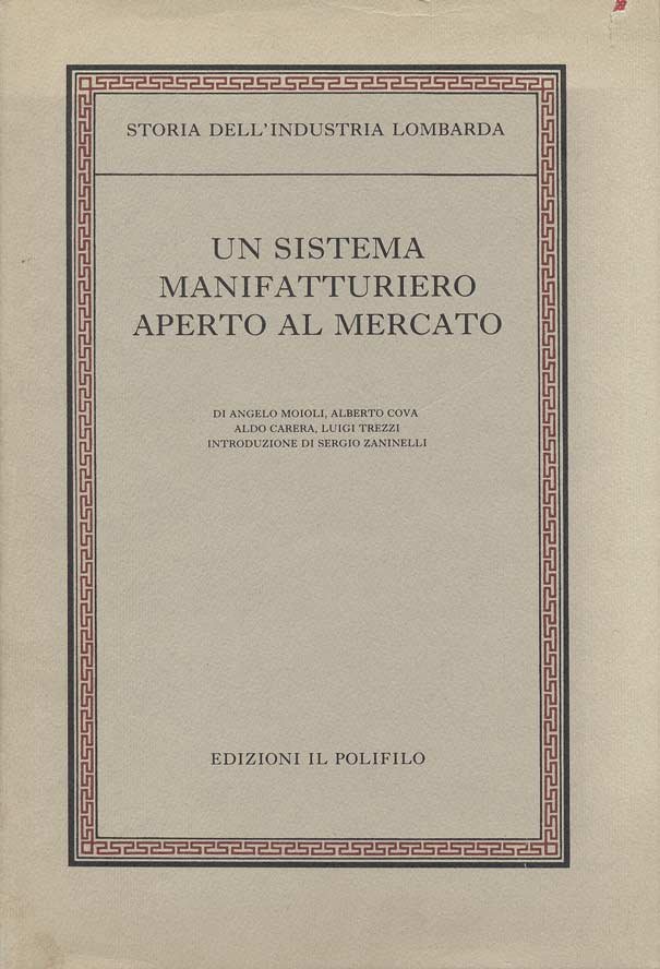 In-8 gr., 4 volumi, tela editoriale, sovracoperta. L'opera è cosi' composta:<br>Vol. I - Un sistema manifatturiero aperto al mercato. Dal Settecento all'Unità politica, pp. XXII,324, con 26 tavole in bianco e nero e a colori fuori testo, inclusa la grande "mappa di popolazione della Lombardia".<br>Vol. II, p. I - Alla guida della prima industrializzazione italiana. Dall'unità politica alla fine dell'Ottocento, pp. XXI,286, con 22 tavole a colori e in bianco e nero fuori testo.<br>Vol. II, p. II - Dalla fine dell'Ottocento alla Grande Guerra, pp. XXIV,269, con 23 tavole a colori fuori testo.<br>Vol. III - Sviluppo e consolidamento di un'economia industriale. Dalla prima alla seconda guerra mondiale, pp. XXI,298, con 23 tavole a colori e in bianco e nero fuori testo. In ottimo stato (fine copy).