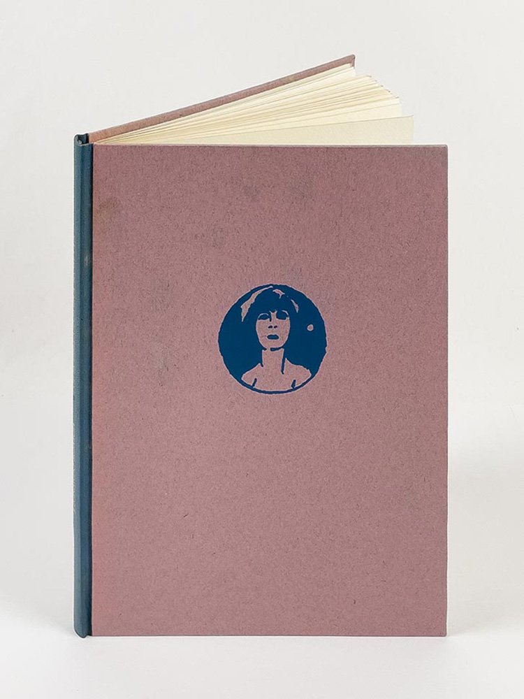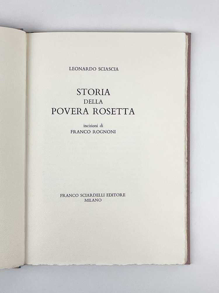 - legatura in mezza pelle con dorso blu e piatti in cartonato color rosa orchidea con ritratto di Rosetta disegnato da Franco Rognoni in ovale al piatto anteriore e titolo al dorso, in cofanetto con bordi smussati ed angoli in pelle,
