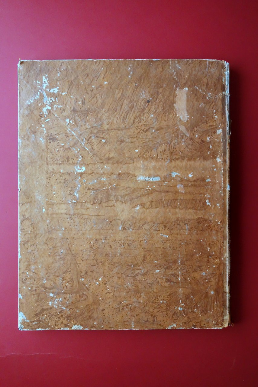 Buone condizioni con tracce d'uso e del tempo; coperta con alcune piccole leggere abrasioni, marginali piccole mancanze ai piatti e di maggiori dimensioni al dorso, quest'ultimo parzialmente mancante della parte superiore (vedi foto), ma esemplare compatto grazie alle cuciture. Pagine ben conservate, marginose, con leggero foxing; errori di rilegatura nel posizionamento di alcune pagine e tavole, che risultano succedersi in tale sequenza: I-II-VII-VIII-IX-X-III-IV-V-VI; le tavole in tale sequenza: correttamente rilegate fino alla XII, poi XVI-XV-XIV-XIII-XVII-XVIII. Tavola VIII con traccia di piega longitudinale; tavola fuori numerazione - panorama con alcune tracce di pieghe e tre strappetti di alcuni cm alla sezione centrale (vedi foto).