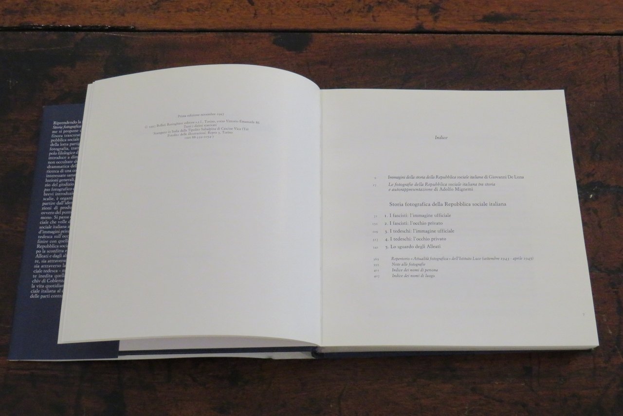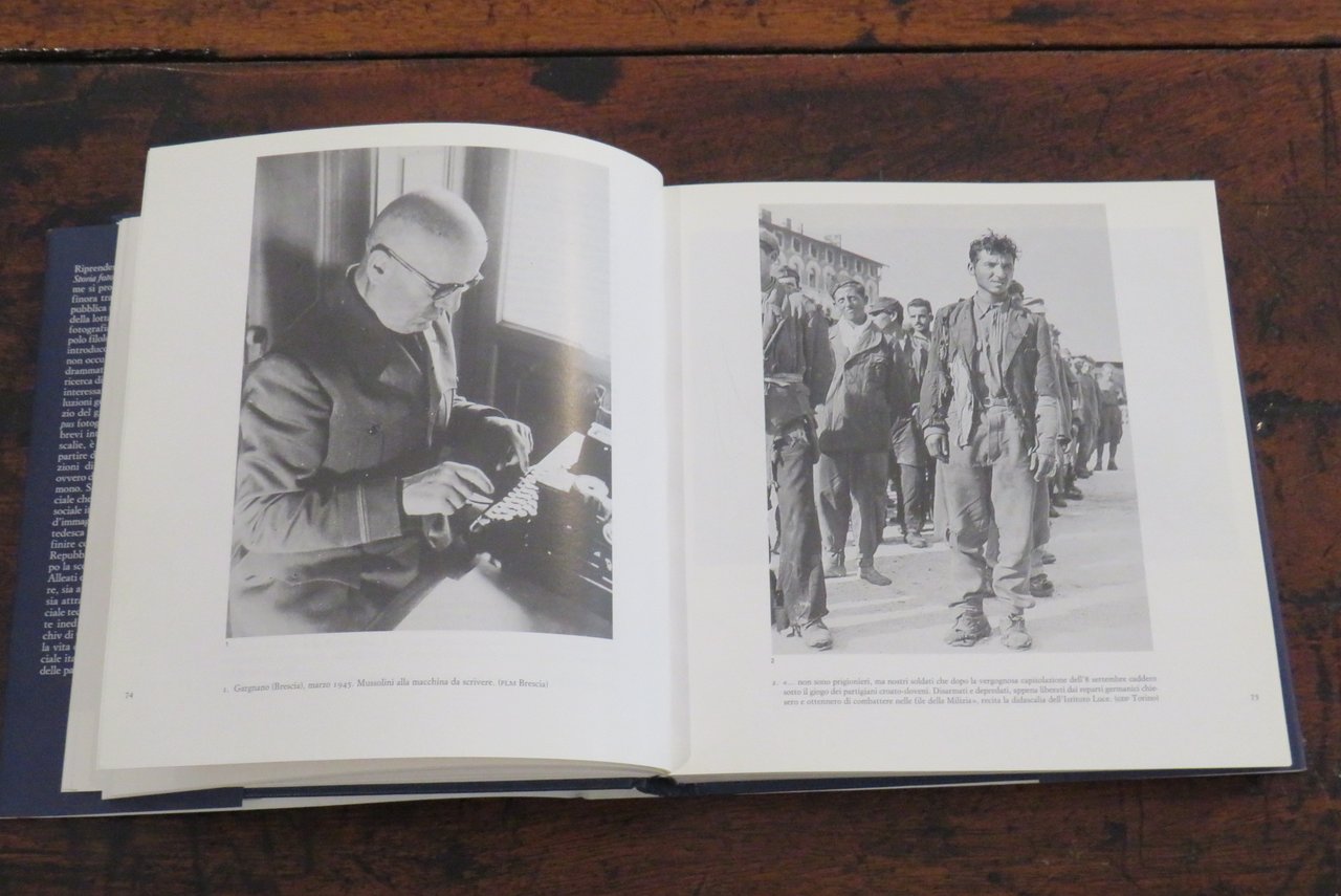 Torino, Bollati Boringhieri Editore, 1997. In -8 quadrato (mm. 210,6x220), pp. 410, con 465 fotografie in bianco e nero e a colori nel testo, di cui alcune a piena pagina, tutte corredate da didascalie. Legatura editoriale muta tutta tela blu, con titolo in bianco al dorso, con sovraccoperta illustrata in nero al piatto anteriore. Brevi introduzioni. Collana "Nuova Cultura" N. 62. Repertorio "Attualità fotografica" dell’Istituto Luce (settembre 1943 - aprile 1945, pp. 366-393). Prima edizione. Lievi macchie al taglio superiore, ma nell’insieme ottimo.
