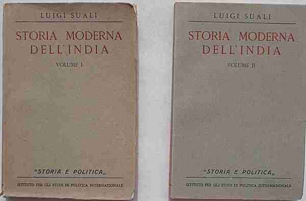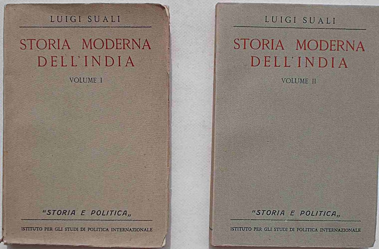 Due volumi in 8° (cm. 21,5 x 14,5); pagg. XXXII, 420 - 412; con 1 cartina più volte ripiegata f.t.; leggera cartonatura origin. Volumi intonsi, ottimo insieme. VG. ** L'Autore fa partire la "Storia moderna dell'India" dall'epoca delle grandi scoperte geografiche "o meglio dei viaggi commerciali", che deteminarono cambiamenti epocali, ancor più dell'immisisone dell'islamismo nel suo tessuto sociale.