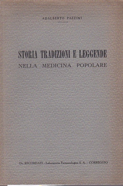 In-8°, pp. 143, brossura posticcia con titolo calligrafato su tassello cartaceo polilobato. 4 tavv. a colori f.t. (SS. Cosma e Damiano - S. Apollonia - L'uroscopia - S. Rocco) e 37 figg. in b.n. n.t. Buon esemplare. Prima edizione. Curioso studio sulle tradizioni, le leggende, le superstizioni della medicina popolare: La Demoiatrica, La magia del male (streghe, fatture, malocchio, etc.), La magia del bene (talismani, santi taumaturghi, magia delle punte, della conta, degli animali, degli organi animali, dei metalli, delle pietre, del colore rosso, del sale, della scopa, delle scale, del pane e del lievito, delle erbe, dei nodi, degli anelli, del passaggio stretto, della morte, della parola, etc.). Bibliografia finale.