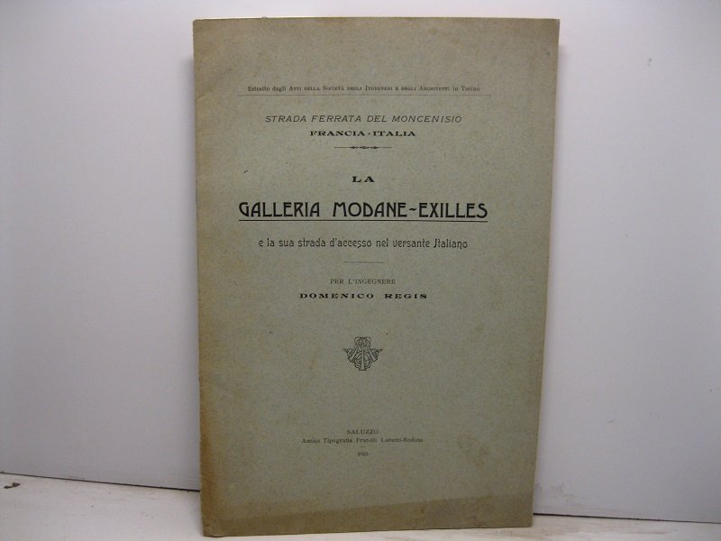 In 4, pp. 11. Br. ed. con 2 cartine piu' volte rip. Estratto degli Atti della Societa' degli Ingegneri e degli Architetti in Torino. Progetto di una seconda galleria oltre quella del Frejus da Modane a Exilles tale da abbassare di 220 metri il punto massimo di valico