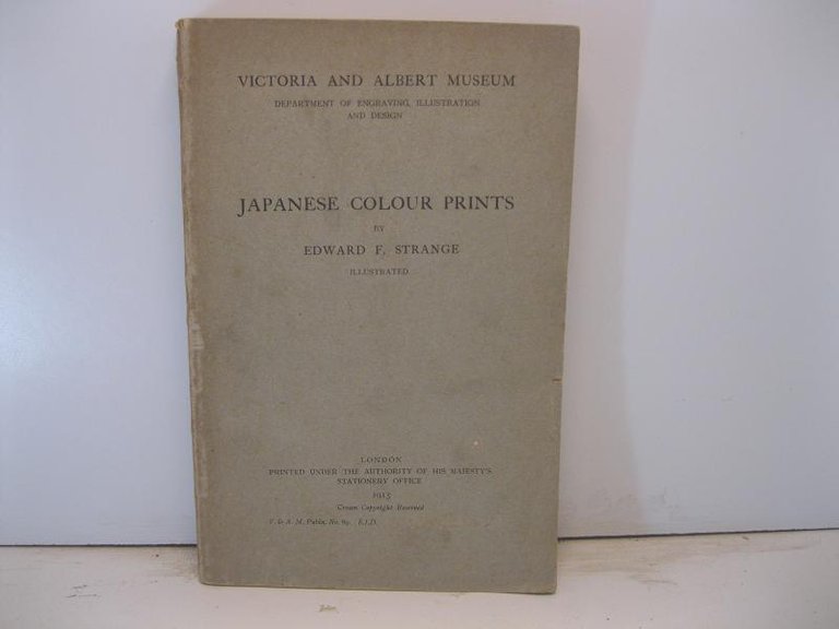 In 8. Pp. X + 169 con 84 tav. f. t. Br. ed. Importante pubblicazione sulle stampe giapponesi conservate al Victoria and Albert, con un imponente apparato iconografico. Dall'indice: The Torii school, Harunobu and his pupils, Utamaro, Yeishi and Yeizan, The Utagawa, Hokusai, The Osaka Group, Kunisada and Kuniyoshi, Surimono, etc.