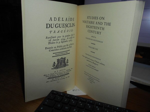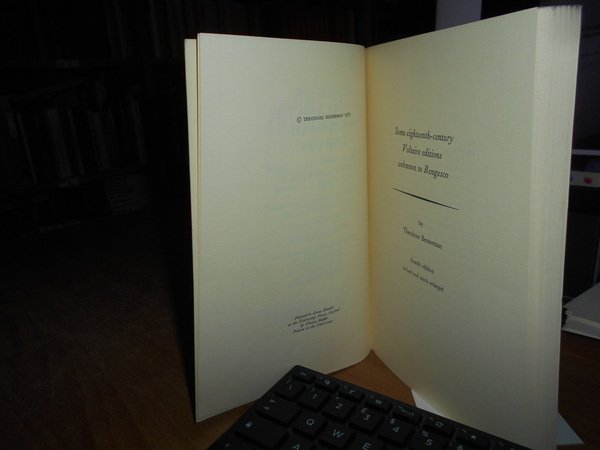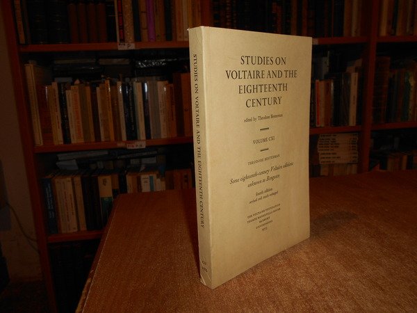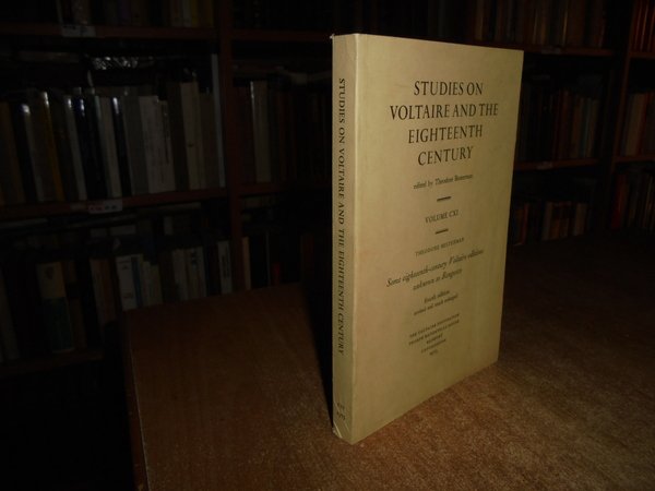 THEODORE BESTERMAN. Oxfordshire, Banbury, 1973. Studies on VOLTAIRE and the Eighteenth Century. Volume CXI- Some eighteenth-century Voltaire editions unknown to Bengesco. In-8°, br. edit. 224 pp. con alcune riproduzioni. Ben conservato con testo in inglese. Neg. mob. nero 20