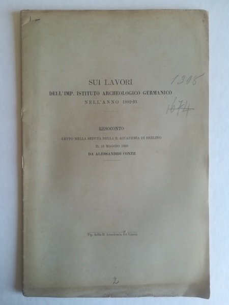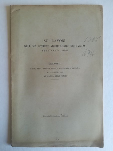 Sui lavori dell'Imp. Istituto Archeologico germanico nell'anno 1892-93. Resoconto