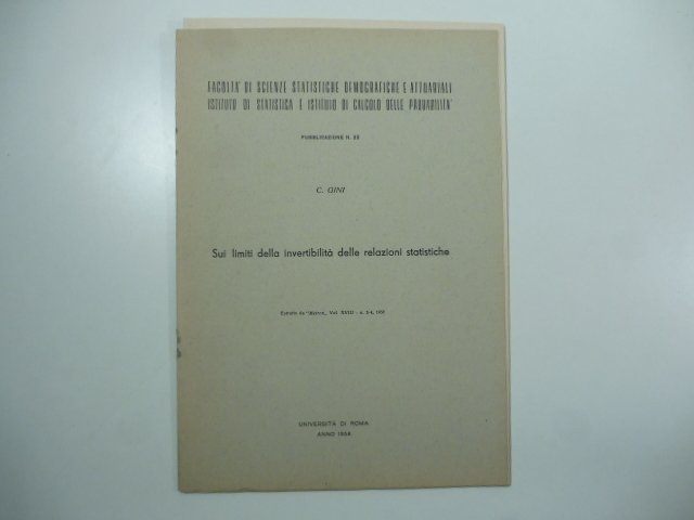 In 8 (cm 17 x 24), pp. 14 con 1 tavola ripiegata furi testo con 1 grafico. Brossura editoriale. Macchie al margine interno dovute ad ossidazione dei punti metallici. Estratto da Metron, n.3-4, 1957.