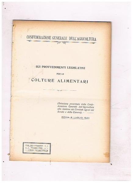 Sui provvedimenti legislativi per le colture alimentari. Luglio 1920.