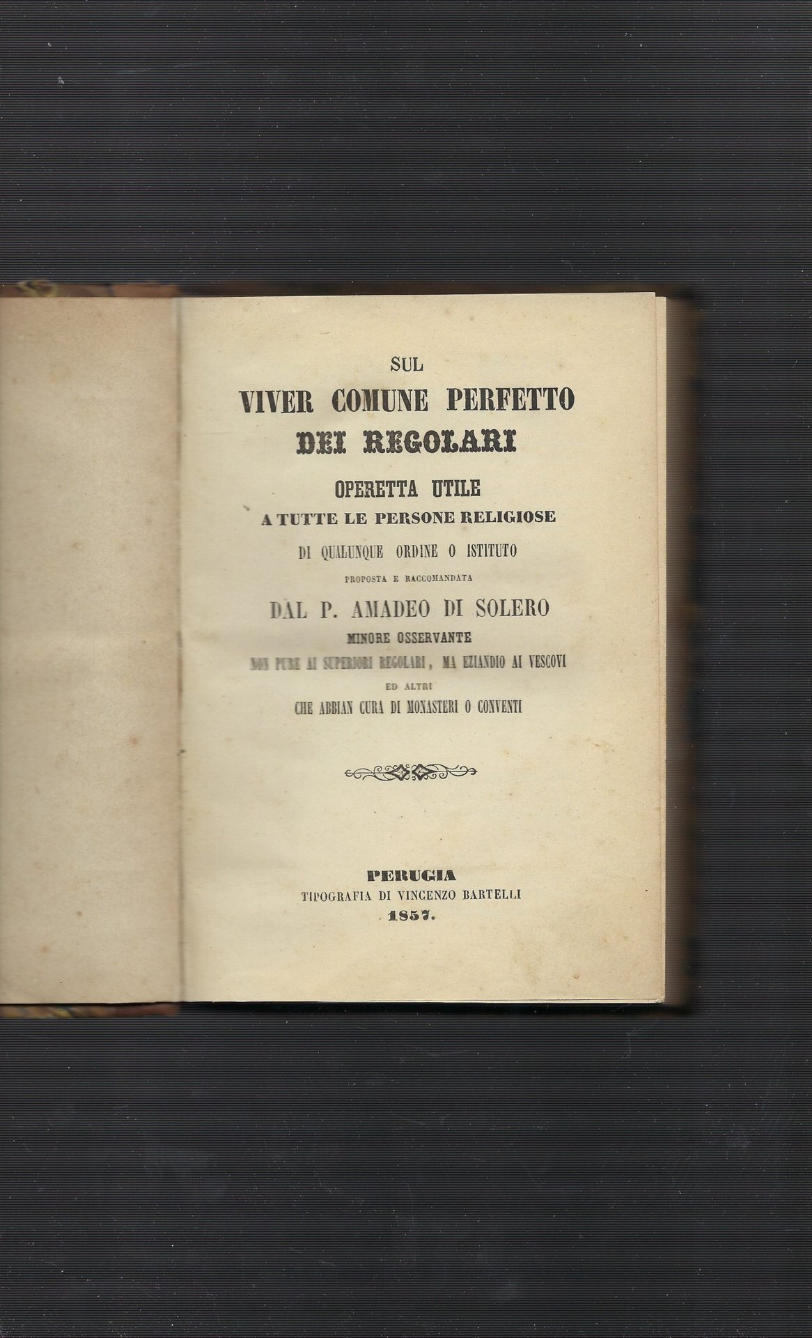 Sul Viver Comune Perfetto Dei Regolari Operetta Utile A Tutte Le Persone Religiose Di Qualunque Ordine O Istituto Proposta E Raccomandata Dal P.Amadeo Di Solero Minore Osservante Non Pure Ai Superiori Regolari,Ma Eziandio Ai Vescovi Ed Altri Che Abbian Cura Di Monsteri O Conventi