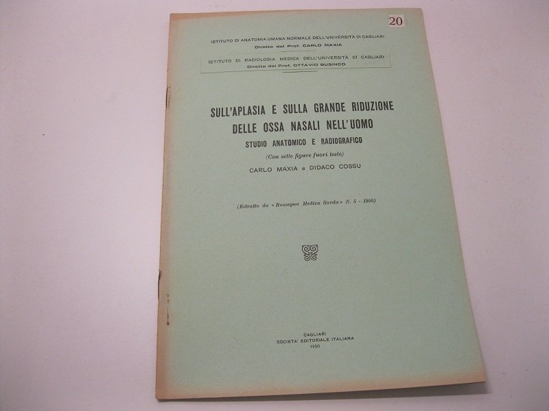 Sull'aplasia e sulla grande riduzione delle ossa nasali nell'uomo. Studio anatomico e radiografico (Con sette figure fuori testo). Estratto da Rassegna Medica Sarda, N.5 - 1950. Ist. di Anatomia umana normale diretto dal prof. Maxia. Ist. di radiologia medica diretto dal prof. Businco