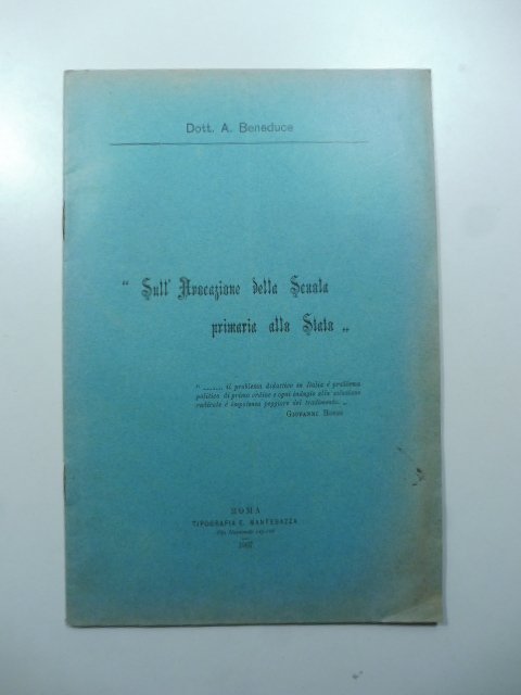 In 8 (cm 16 x 24), pp. 15 con 2 tavole finali su doppia pagina con tabelle. Appunti manoscritti e correzioni del testo  particolarmente fitti alle tabelle finali con vere e proprie aggiunte, modifiche e correzioni del testo, di probabile mano dell'Autore.