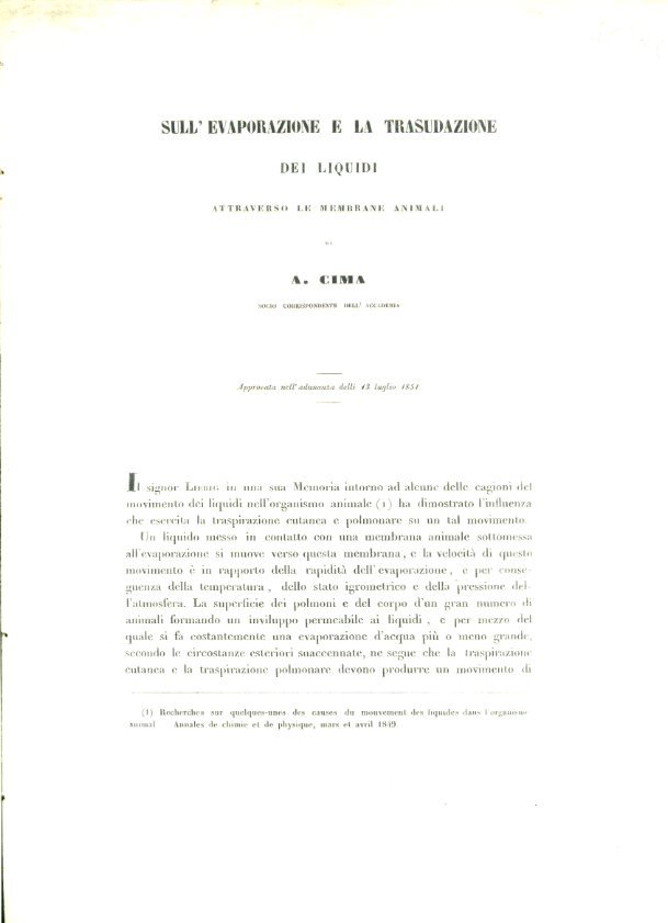 Sull'evaporazione e la trasudazione dei liquidi attraverso le membrane animali