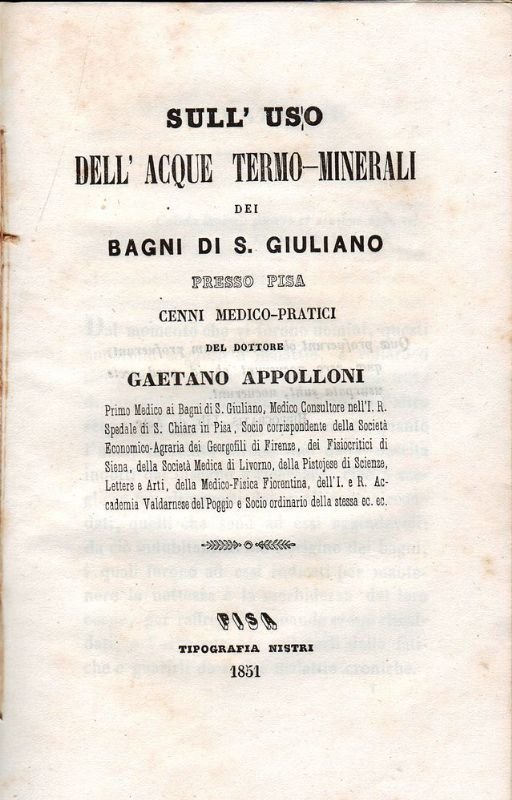 Sull'uso dell'Acque Termo-Minerali dei Bagni di S. Giuliano presso Pisa.