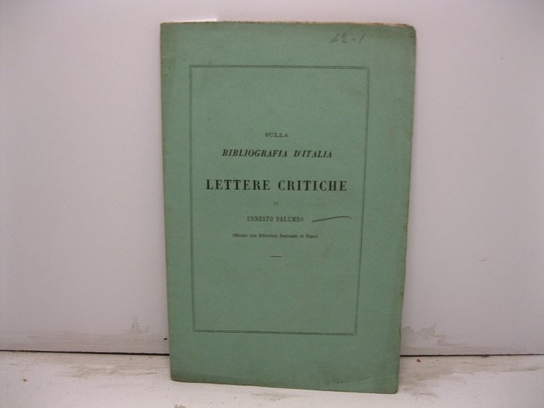 In 16, pp. 24. Br. ed. Lettere indirizzate ad Ermanno Loescher relative alla compilazione e pubblicazione della Bibliografia d'Italia da parte della casa editrice con critiche in merito ad errori presenti nell'opera in questione.