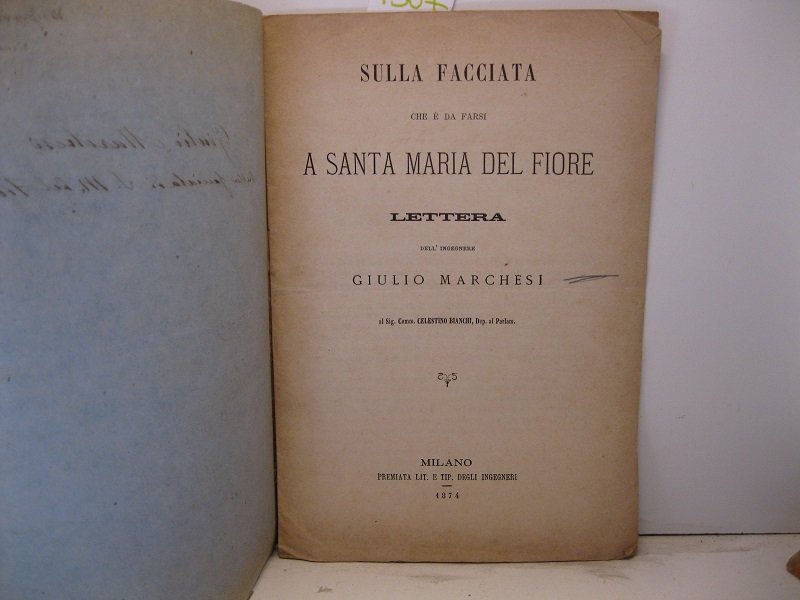 Sulla facciata che e' da farsi a Santa Maria Del Fiore. Lettera dell'ingegnere Giulio Marchesi al Sig. Comm. Celestino Bianchi, dep. al Parlam.
