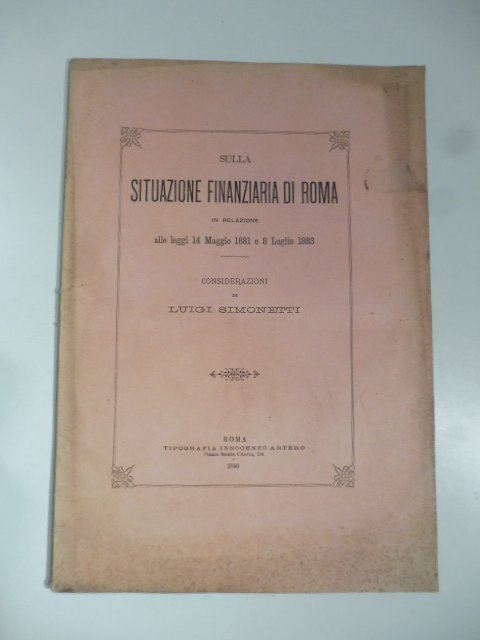 Sulla situazione finanziaria di Roma in relazione alle leggi 14 maggio 1881 e 8 luglio 1883. Considerazioni