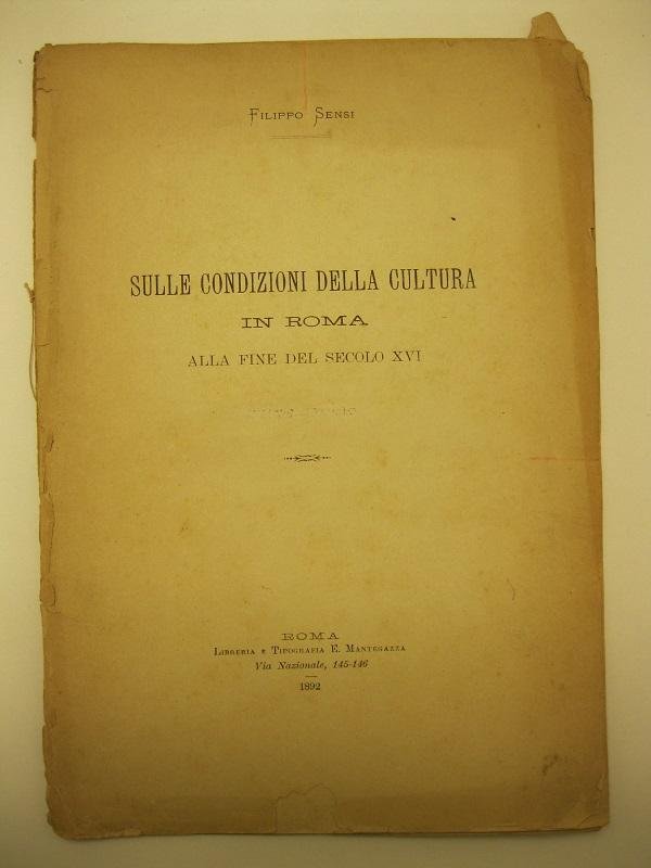 Sulle condizioni della cultura in Roma, alla fine del Secolo XVI