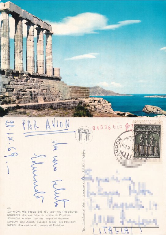 Sunio. Una veduta del tempio di Posidone - Viaggiata 1969