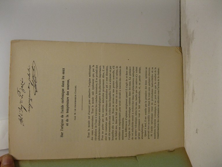 In 8, pp. 7 + (1b). Dedica autogr. dell'aut. alla prima p. Br. rifatta. Extrait du compte-rendu du V Congre's International d'Hydrologie me'dicale, de Climatologie et de Ge'ologie (Lie'ge - 1898).
