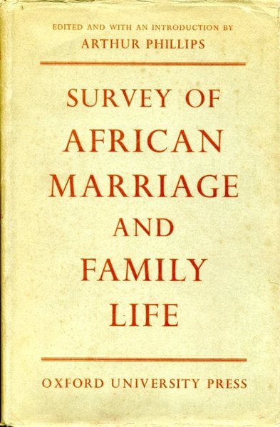 No marks or inscriptions. A very clean very tight copy with bright unmarked boards, clear gilt lettering to spine, slight foxing to page edges and no bumping to corners. Dusty dust jacket not price clipped with small water marks to spine and rear, sunned, tiny repair to top of spine and nicks/rubbing to edges. Fold-out map at end in perfect condition. 462pp. A detailed study into African marriage and family life and the effects on them of contact with Western civilization. Very scarce in dust jacket.