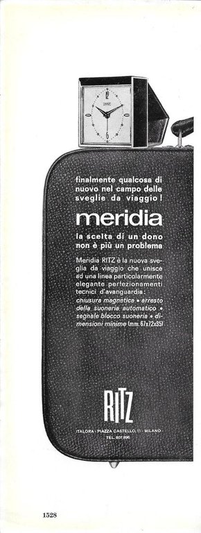 Sveglia da viaggio Meridia Ritz. Advertising 1963