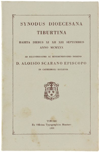 SYNODUS DIOCESANA TIBURTINA habita diebus XI XII XIII septembris anno MCMXXX.