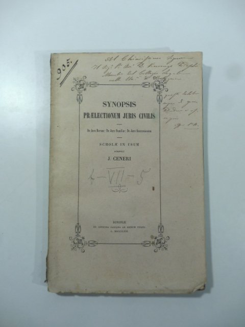 Synopsis praelectionum juris civilis. De jure rerum; De jure familiae; De jure successionum. Scholae in usum