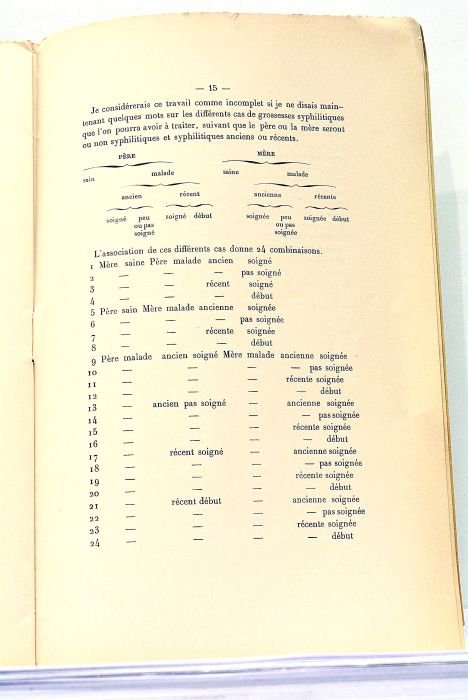 2 pages non chiffrées + 17 pages (16x25cm). Couverture imprimée défraîchie. Papier légèrement roussi. Bon exemplaire. Médecine. Grossesse. Rare Tiré-à-part du "Dauphiné Médical-Novembre 1903". Grenoble.