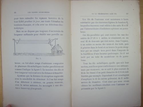 T.S.F. Postes Récepteurs. Comment on les construit et comment on les dispose pour recevoir chez soi les télégrammes de la Tour Eiffel et des nations voisines. La Télégraphie sans fil pendant la guerre. Supplément de la huitième édition de La Télégraphie sans fil à la portée de tout le monde, 1 vol. in-12 br., H. Dunod et E. Pinat, Paris, 1916, 116 pp. Etat très satisfaisant (couv. frottée, bon état intérieur). Peu courant.