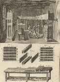 Cartella in cart. muta di cm 28,5 x 23 ca., contenente 5 inc. 1) Attelier de l'epoulardage, de la mouillade, des ecoteurs et developpemens (doppia). 2) Atteliers des Fileurs et developpemens, et atteliers des rolleurs et coupeurs (doppia). 3) Attelier des presses et developpemens. 4) Suite de la pl. 2 et developpemens d'une presse. 5) Atteliers des ficeleurs des pareurs et d'eveloppemens.