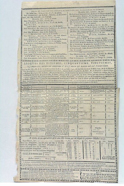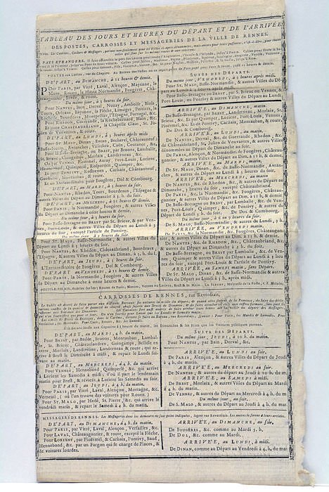 TABLEAU DES JOURS ET HEURES DU DÉPART ET DE L'ARRIVÉE DES POSTES, Carrosses et Messageries de la Ville de Rennes…