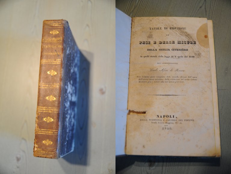 Afan de rivera carlo tavole di riduzione pesi e misure della sicilia citeriore . napoli 1840 .
