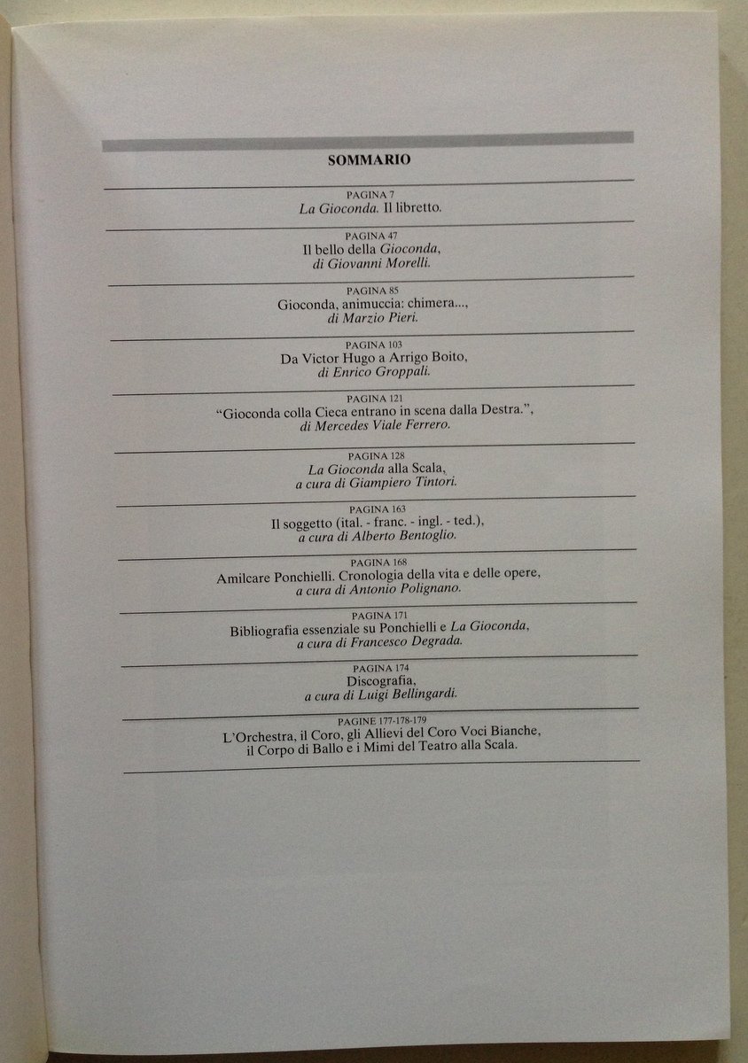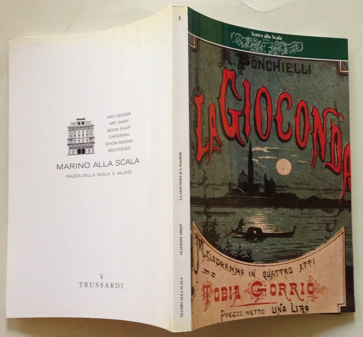 Teatro alla Scala, La Gioconda Melodramma in quattro atti Teatro alla Scala, Milano, 1997; cm. 27x18,5; pp. 179; con ill. fot. in b/n e a col. n.t. e a piena pag.; storia della Gioconda con ricchissimo corredo fotografico e testuale; cartoncino editoriale ill. a col; annessa locandina rappresentazione. Condizioni di conservazione Volume in ottime condizioni di conservazione. SETT84.L18099 MT