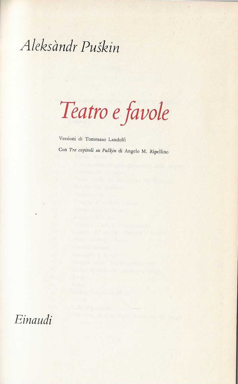 Legatura editoriale in tela setificata lievemente ingiallita dal tempo. Versione di Tommaso Landolfi con Tre capitoli su Puskin di Angelo M. Ripellino.